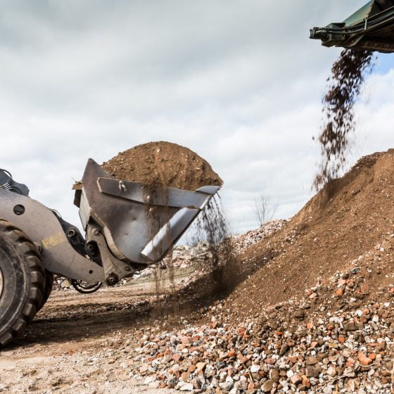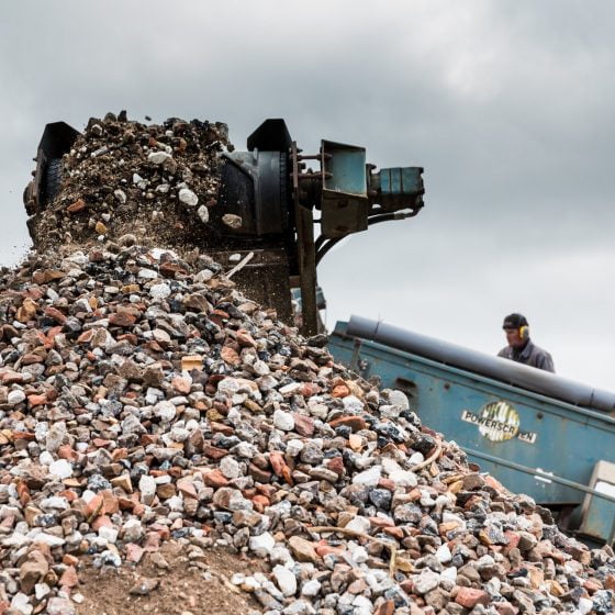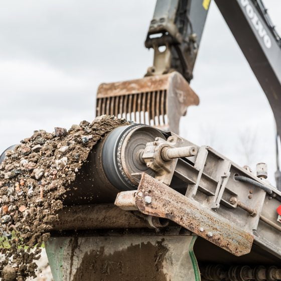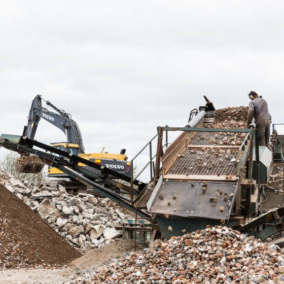 Granulaat is het eindproduct van het vermalen van brokken puin die vrij komen bij wegenbouw of sloop van gebouwen. Sinds 2021 beschikken we over onze eigen puinbreker. Deze roterende breker breekt beton- en metselwerkpuin efficiënt tot menggranulaat van 0/31,5 millimeter. De schudzeef sorteert het eindproduct op elke gewenste fractie en het granulaat wordt automatisch gewogen. Op deze manier kan per dag tot 1500 ton puinafval worden omgezet in een bruikbaar product.
