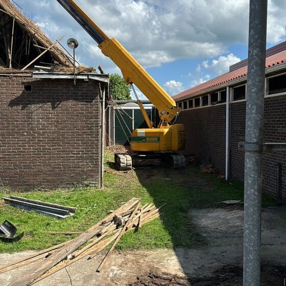 - Uitvoering: Met onze specialistische kranen breken we het object vakkundig af en sorteren we het afval ter plekke.